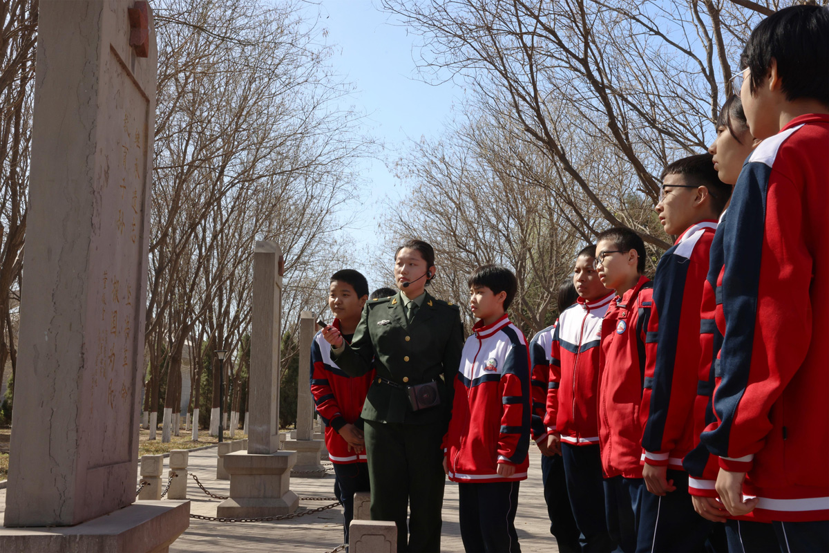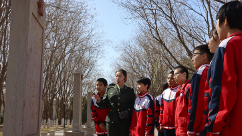 清明节前夕,河北省新河董振堂红军中学组织部分师生来到董振堂事迹陈列馆,向革命烈士塑像敬献花篮并聆听英烈事迹,传承红色基因。(李世强 新河县融媒体中心供稿)