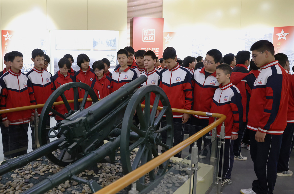 学生参观董振堂事迹陈列馆展厅。李世强 摄