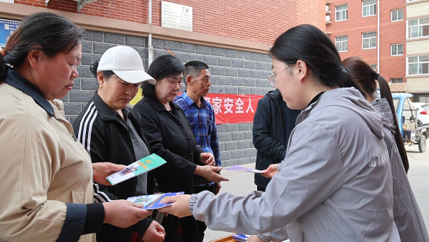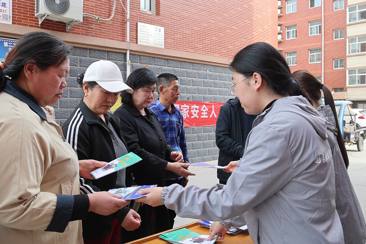 工作人员向社区居民发放国家安全知识资料。刘莹 摄
