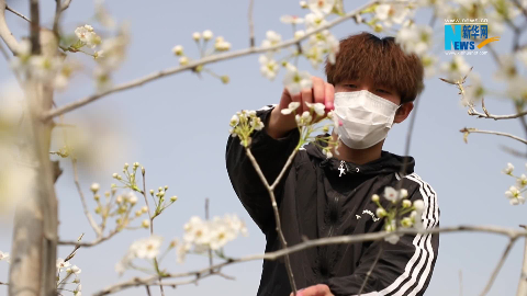 近日,在河北省沧州市孟村回族自治县冀梨农民专业合作社,来自河北农业大学的专家指导果农为梨花实施人工授粉。近年来,孟村与河北农业大学合作,筛选耐盐碱梨果品种,推广科学种植技术,让盐碱地上结出金灿灿的果子。