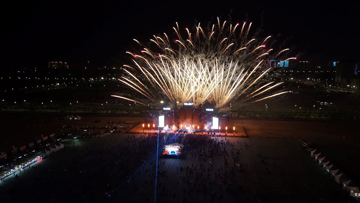 音乐节现场烟花绚烂。陈雨峰 摄