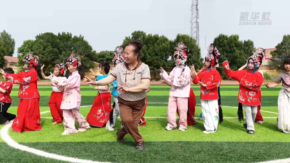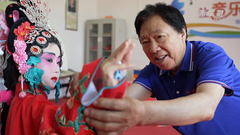 在河北沧州青县木门店镇中心学校哈哈腔训练基地,孩子们在国家级非物质文化遗产项目哈哈腔代表性传承人刘宗发的带领下,学唱哈哈腔。