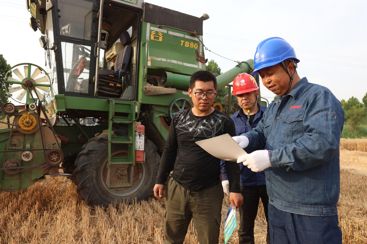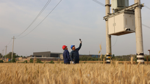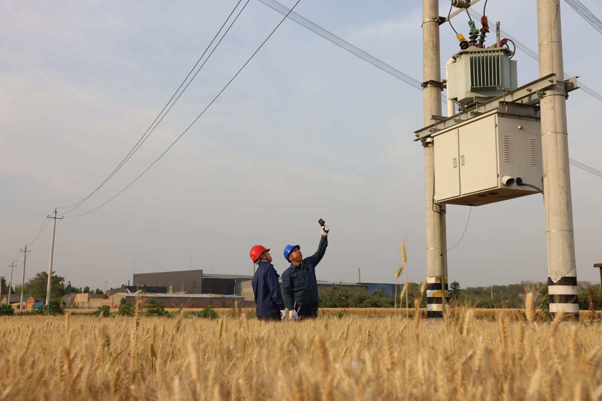 近日,国网新河县供电公司组织党员服务队深入田间地头,向农机手宣讲电力设施保护知识,对农灌线路、变压器等电力设备进行巡检,为“三夏”生产保驾护航。(李世强 新河县融媒体中心供稿)