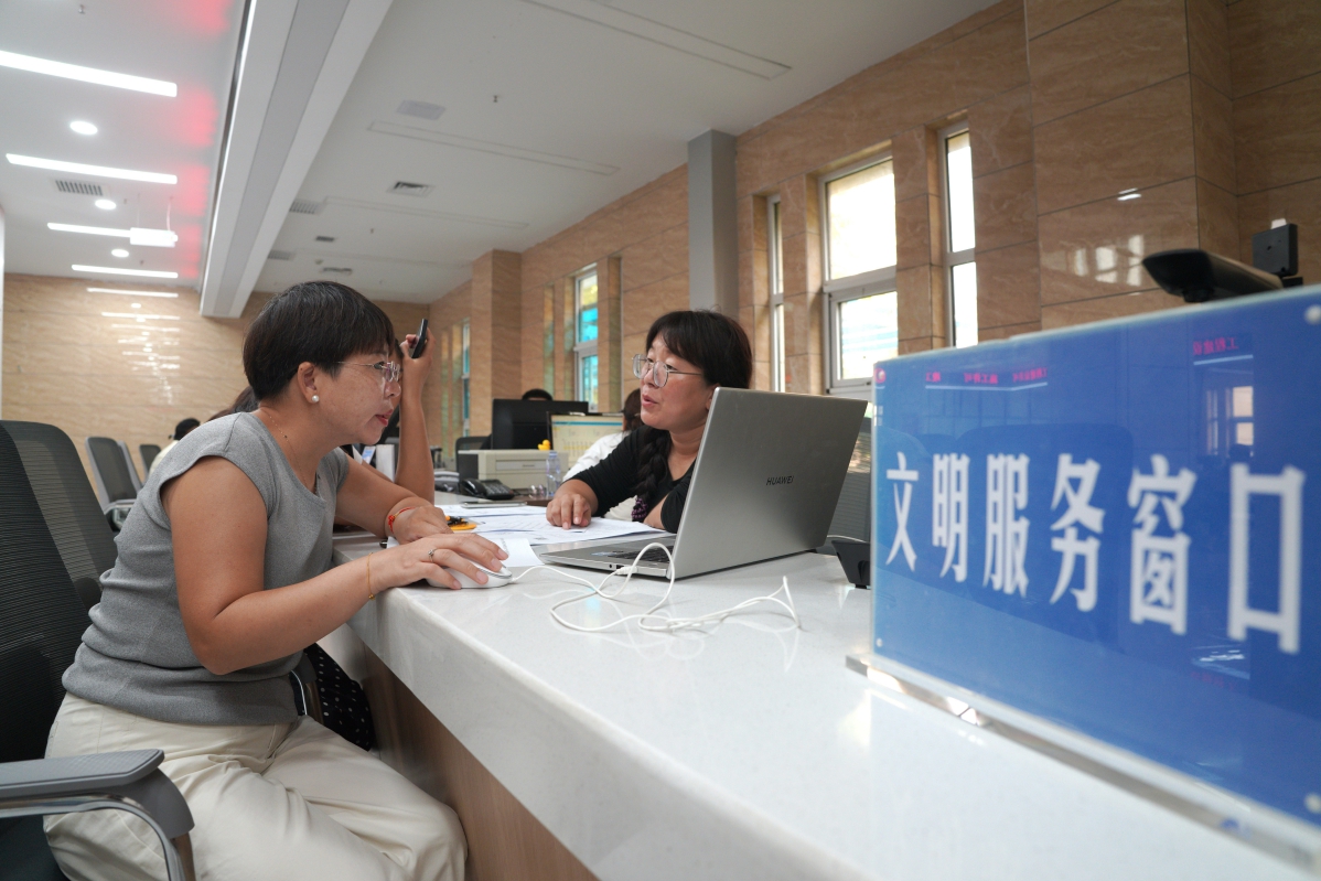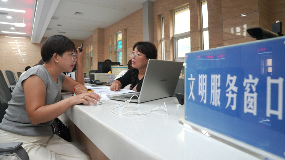 内丘县行政审批局工作人员为企业办理审批手续。刘媛媛 摄