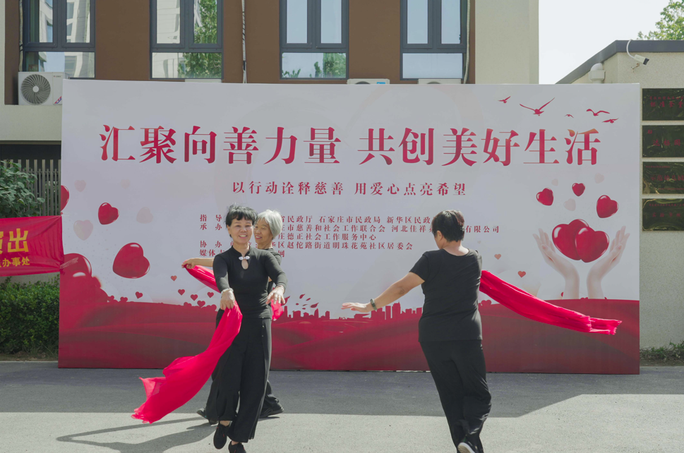 此次活动由新华区民政局和赵佗路街道办事处具体指导,石家庄市慈善和社会工作联合会、石家庄德正社会工作服务中心与河北佳祥养老服务有限公司等联合承办,旨在通过多元化的公益形式,动员社会力量参与慈善,传递公益慈善理念,普及慈善知识。活动设置了慈善文艺演出区、趣味互动体验区、爱心服务区、公益电影放映区、爱心义卖专区等。志愿者为公众提供了义诊、义剪等公益服务。参加活动的居民观看了社区群众与志愿者的精彩表演,参与了互动游戏,爱心人士现场为困境儿童帮扶项目进行了捐款。