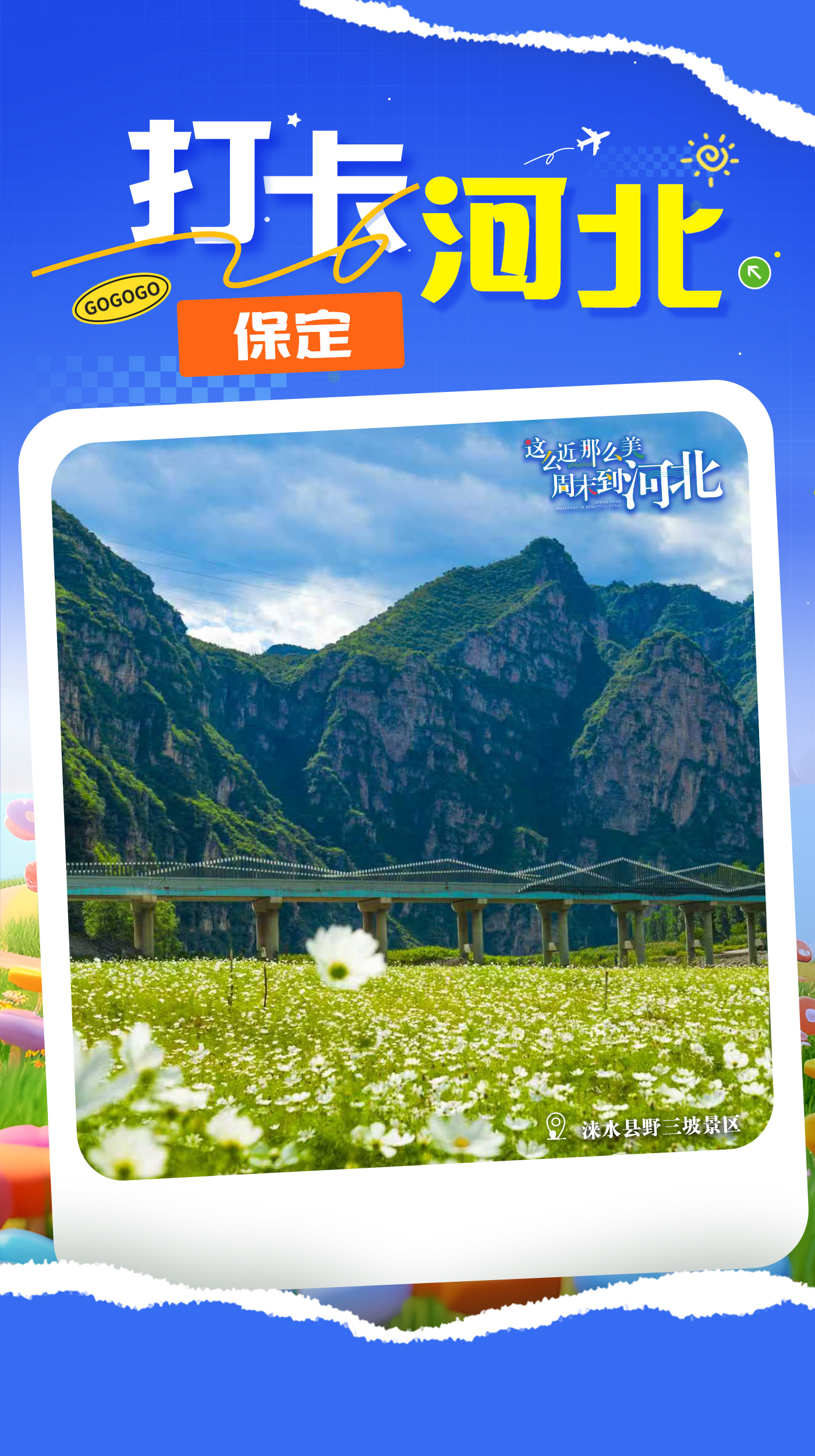 “这么近,那么美,周末到河北”!第九届河北省旅游产业发展大会在太行山沿线五市联动举行。9月19日至21日,目光锁定保定分会场活动。打卡河北,一起来打卡保定市涞水县!