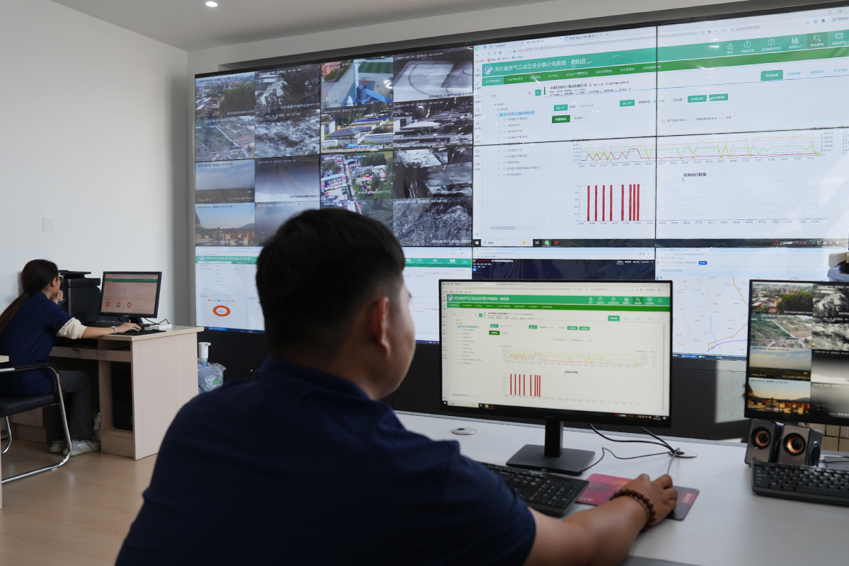 曲阳县生态环境工作人员查看监管平台。王立鹏 摄
