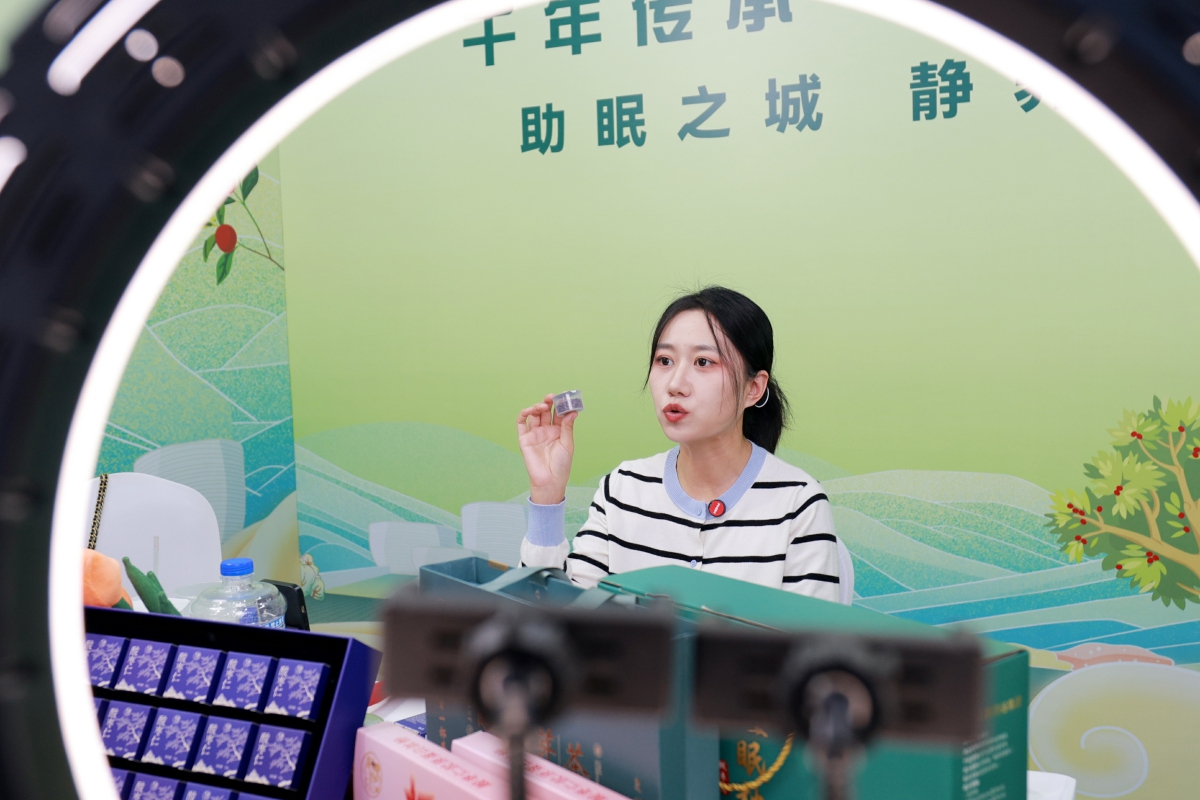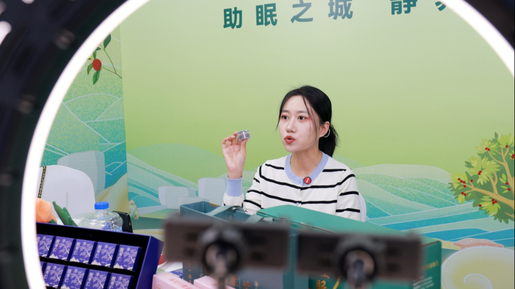 工作人员直播销售特色产品。