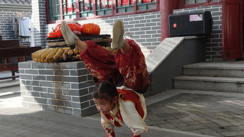 大运河畔,沧州市吴桥县桑园镇小第九村。9月29日,刁家班杂技小院排练厅热火朝天——空竹翻飞如蝶,晃管摇摆惊心,独轮车穿梭如风,一个个稚嫩身影在倒立与腾挪间,早已汗透衣背。别看他们年纪小,个个手里都攥着真功夫。