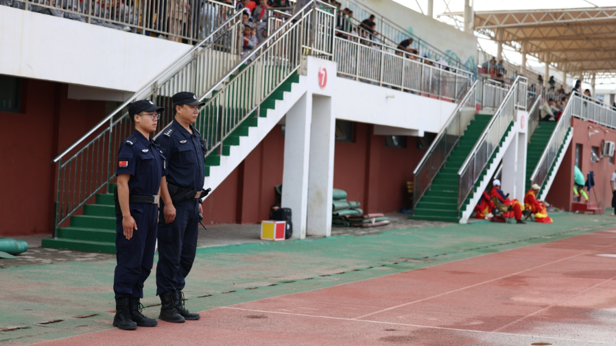 新河县公安局辅警在赛场周边执勤。李世强 摄