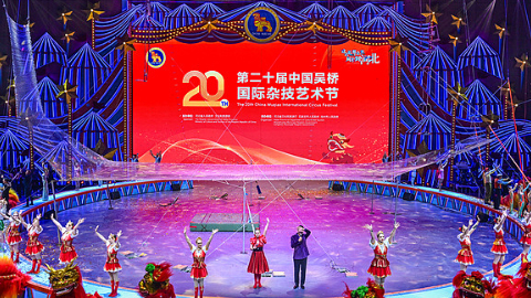 10月3日,第二十届中国吴桥国际杂技艺术节闭幕。图为闭幕演出现场。李东宇 摄