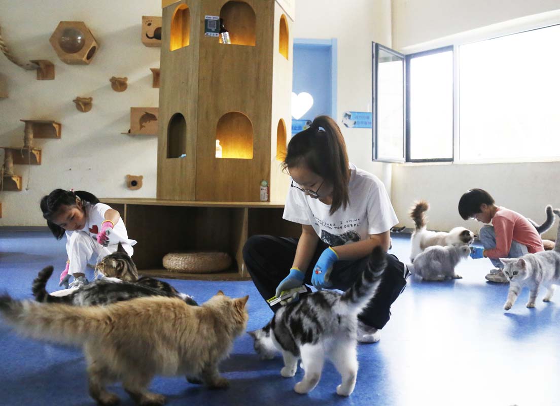 游客在邢台市南和区红鼻子萌宠乐园景区与萌宠互动。