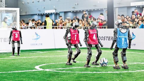 赛场上的人形机器人,由北京加速进化科技有限公司研发。“它们具有超大关节运动空间,踢球时灵活度高。”该公司现场工作人员介绍,为在比赛中取得好成绩,各高校参赛队伍精心为自己的“球员”设计了整体战术风格软件代码。