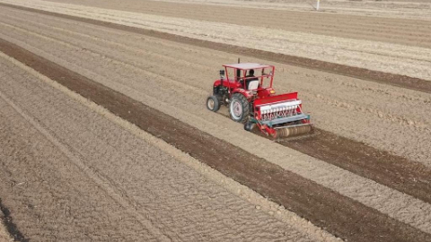 31日清晨,在河北省馆陶县南徐村乡西厂村的农田里,播种机隆隆作响,种粮大户张之旺正抢抓农时,将一粒粒饱满的麦种播入土中。