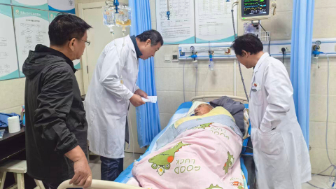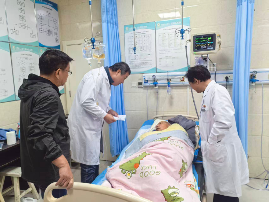 北京市朝阳中西医结合急诊抢救医院介入医学科主任张强在张家口市下花园区医院急诊室现场开展技术培训