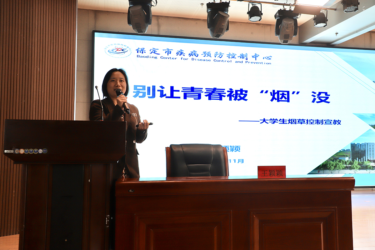 保定市疾病预防控制中心健康教育科王颖颖讲解了吸烟的多重危害和常见误区,她鼓励师生主动远离烟草,建设无烟校园。