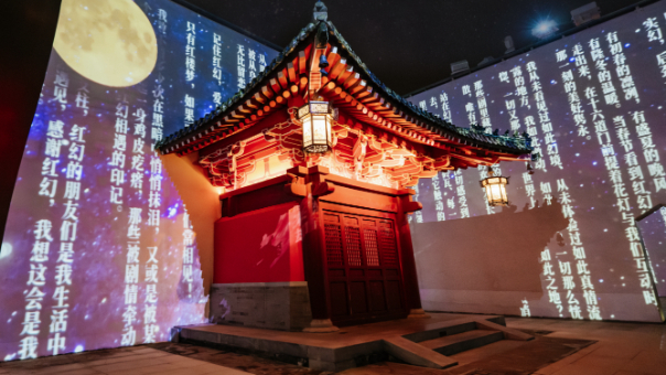 国庆中秋“双节”期间,在只有红楼梦·戏剧幻城上演中秋限定光影秀——“把思绪说给月亮听”。