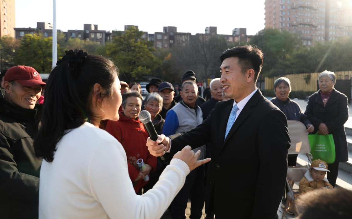 主持人与群众进行文明知识互动问答。马原 摄