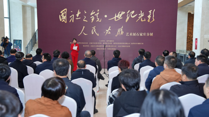 “国社之镜·世纪光影之人民必胜”艺术展石家庄分展开幕仪式现场。毛鹤然 摄