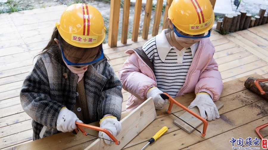 雄安雄东长宁幼儿园的孩子们正在做手工。中国雄安官网发