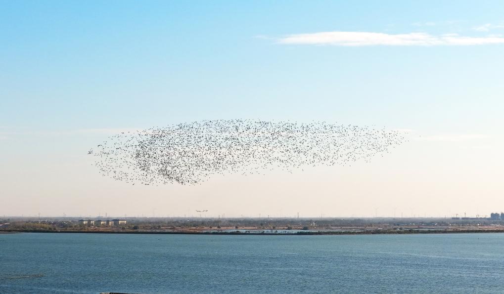 图为河北衡水湖国家级自然保护区的“鸟浪”。新华社发(周津 摄)