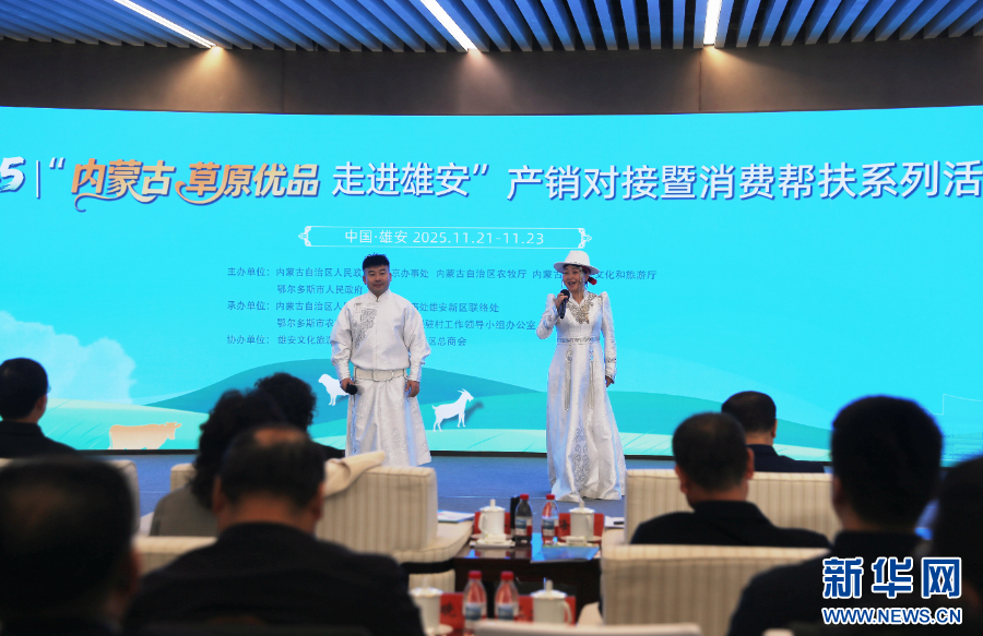 11月22日,2025“内蒙古草原优品走进雄安”产销对接暨消费帮扶系列活动启动仪式在雄安会展中心举行。新华网 李倩摄