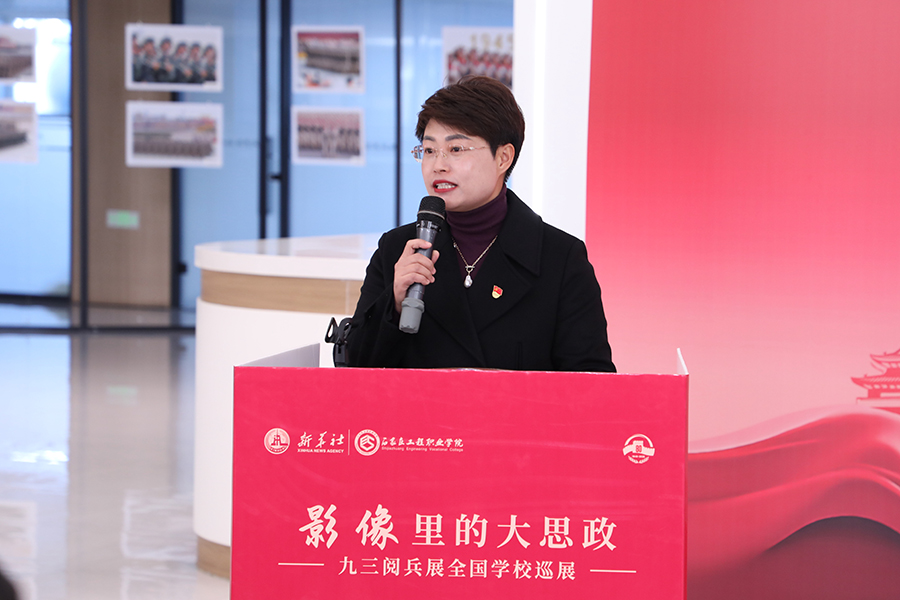 在“影像里的大思政·九三阅兵展”全国学校巡展石家庄工程职业学院站现场,一张张影像展板整齐陈列,从威武的受阅方阵到先进的武器装备,从昂扬的军人风貌到震撼的阅兵瞬间,让师生在参观中珍惜和平,凝聚对国家和民族的认同感。