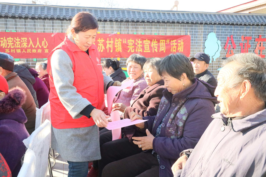 今年12月4日是第十二个国家宪法日。近日,河北省南宫市司法局联合苏村镇政府开展“宪法宣传周”进乡村活动。活动中,工作人员通过发放宣传资料、提供现场咨询、开展面对面讲解等形式,向村民普及宪法知识,引导村民增强法律风险防范意识,切实做到尊法、学法、懂法、用法。