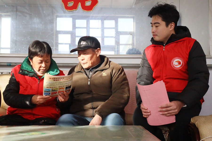 在南宫市苏村镇大家村,工作人员为村民讲解宪法相关知识。田优 摄