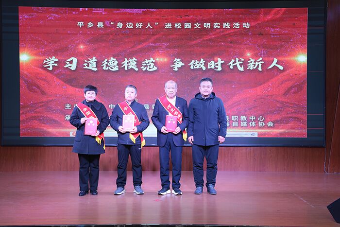 12月5日,河北省平乡县“身边好人”进校园文明实践活动在平乡县职教中心举行。本次活动由平乡县委宣传部主办,平乡县文明办、教育局、网信办、融媒体中心、自媒体协会及平乡县职教中心承办。