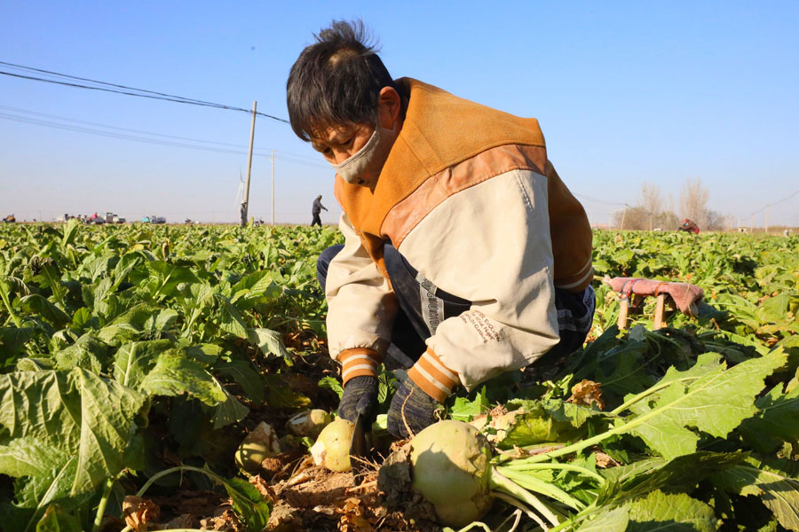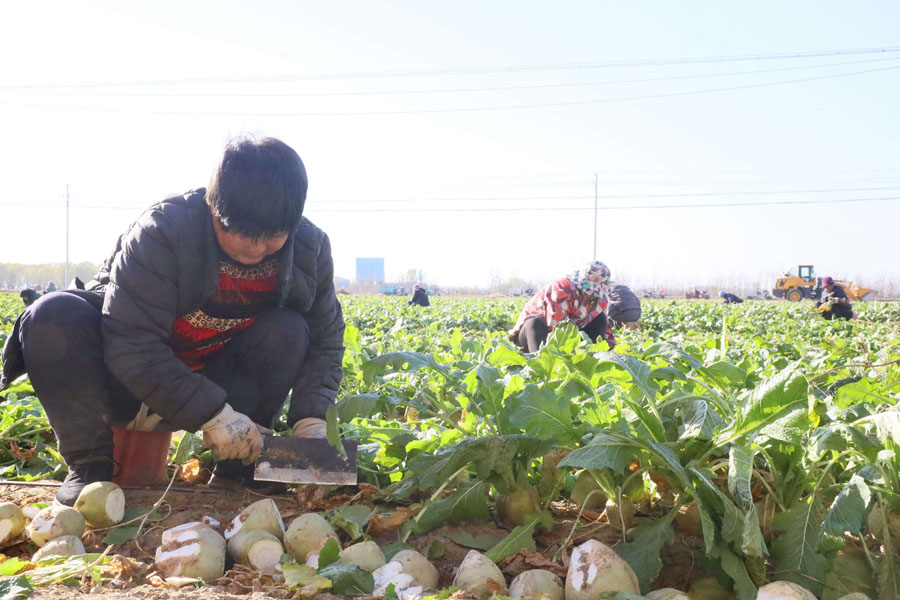 南宫市前尔家铺村农民在收获芥菜。田优 摄