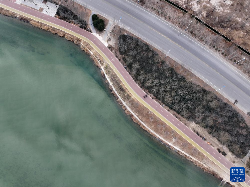 这是石家庄市翠屏湿地公园内的环城绿道(12月10日摄,无人机照片)。