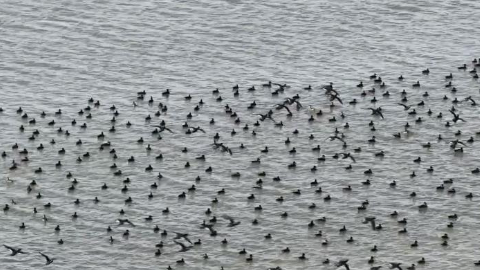 在河北沧州南大港湿地的广阔水面上,成千上万只花脸鸭或低空掠过水面,或在浅滩区嬉戏觅食。当它们集体振翅升空时,庞大的鸟群在湿地上空盘旋飞舞,遮天蔽日,形成一股股翻滚的“鸟浪”,景象蔚为壮观,再次刷新了该物种在本地的观测记录。