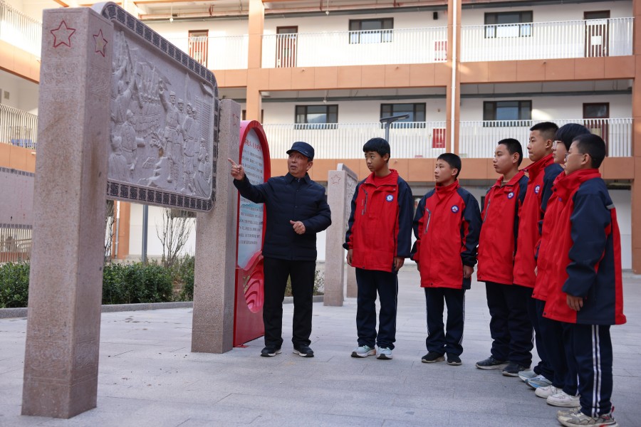 “五老”宣讲团成员范光辉为学生讲述红军将领董振堂的革命事迹。李世强 摄