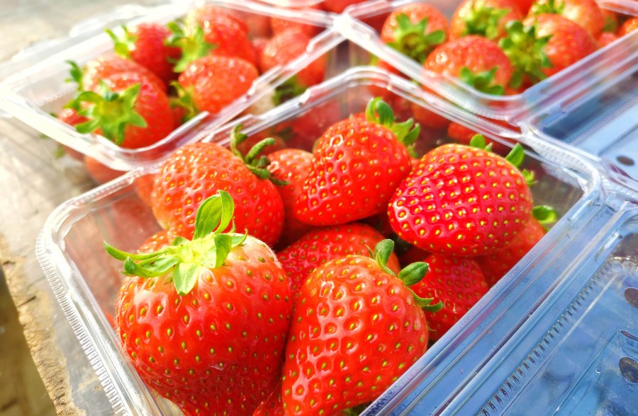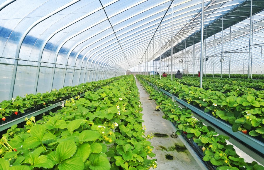 石家庄市井陉县小作村智能温室大棚内的草莓。