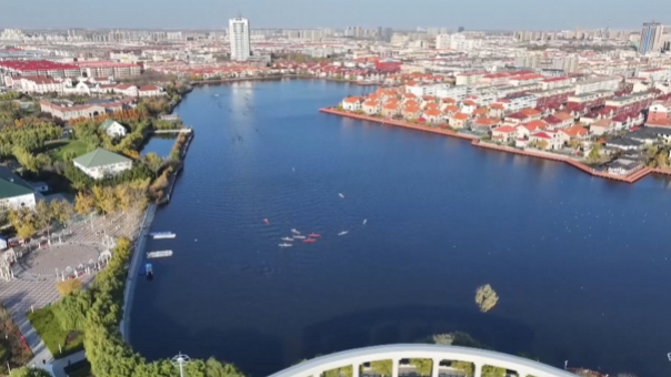 近日,河北省沧州渤海新区黄骅市新世纪中学的学生在西湖公园内开展皮划艇水上训练,一艘艘皮划艇如箭疾驰,尽显青春活力。