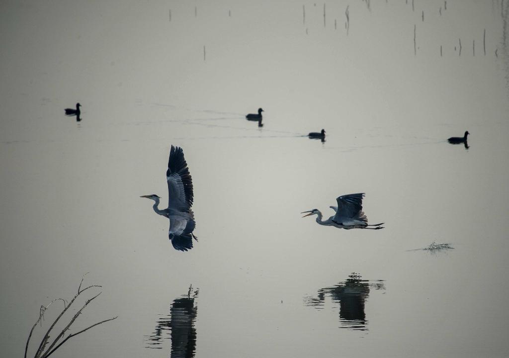 新华社石家庄12月28日电(记者赵鸿宇)深冬时节,不少水鸟在河北省邯郸市复兴区的沁河上嬉戏、觅食,引得市民驻足,用手机记录下冬日里的生机。