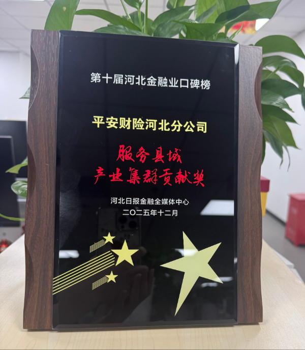 近年来,平安产险河北分公司聚焦河北特色产业集群发展需求,通过创新保险产品、优化服务模式等,为县域产业高质量发展注入金融动力。近日,公司在“第十届河北金融业口碑榜”年度评选中,荣获“服务县域产业集群贡献奖”。