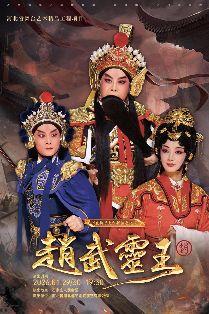 由河北省河北梆子剧院创排的大型新编历史剧《赵武灵王》定于1月29日、1月30日连续两天在石家庄人民会堂演出。剧目聚焦战国时期赵武灵王推行胡服骑射改革的壮阔历程,是剧院近年来深入挖掘本土历史、以河北梆子讲好河北故事的又一重要实践。