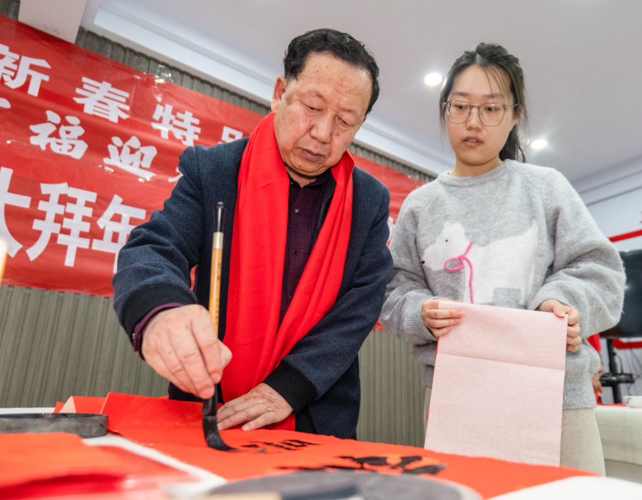 近日,张家口市宣化区举办2026年万副春联大拜年文艺志愿服务活动。活动现场,宣化区书法家协会的书法家们挥毫泼墨,写春联和福字,为当地群众送上新春祝福。