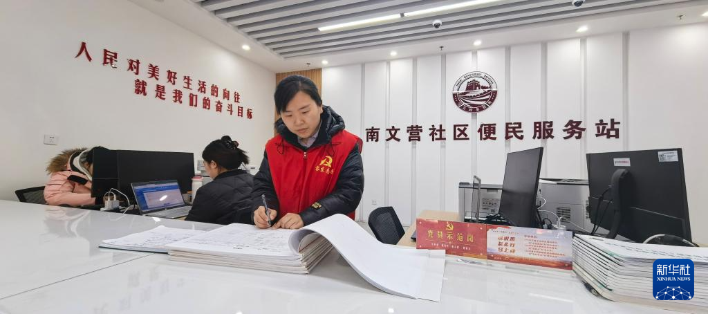 南文营社区党总支组织委员田佳在整理民情台账。新华社记者 苏凯洋 摄