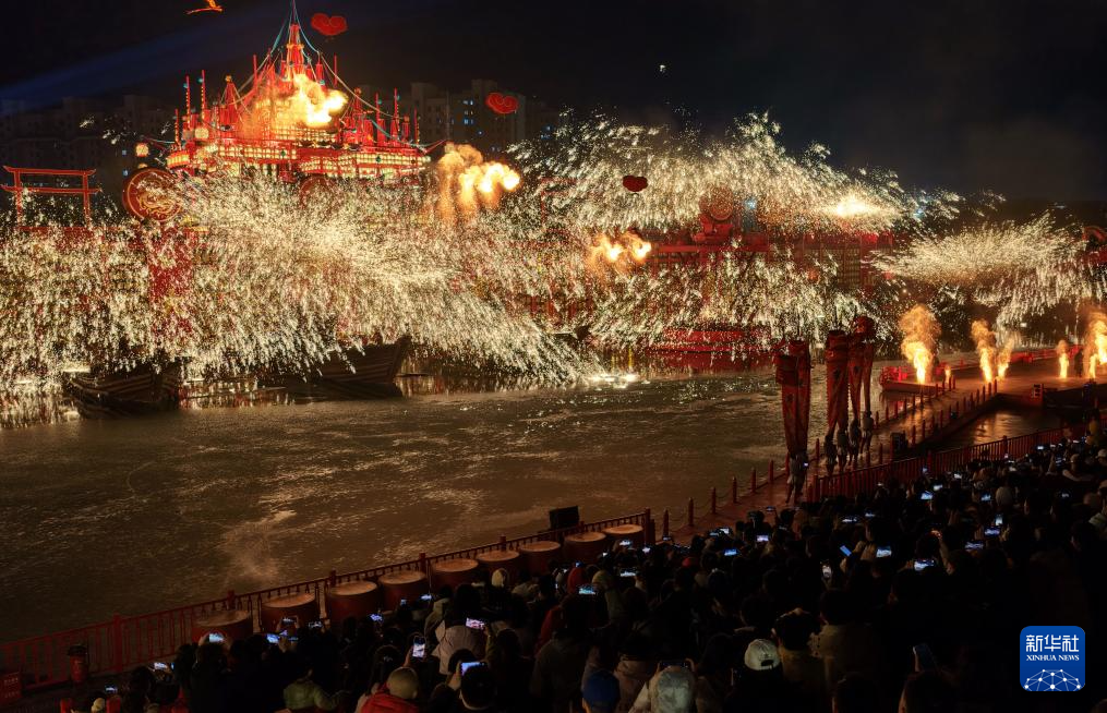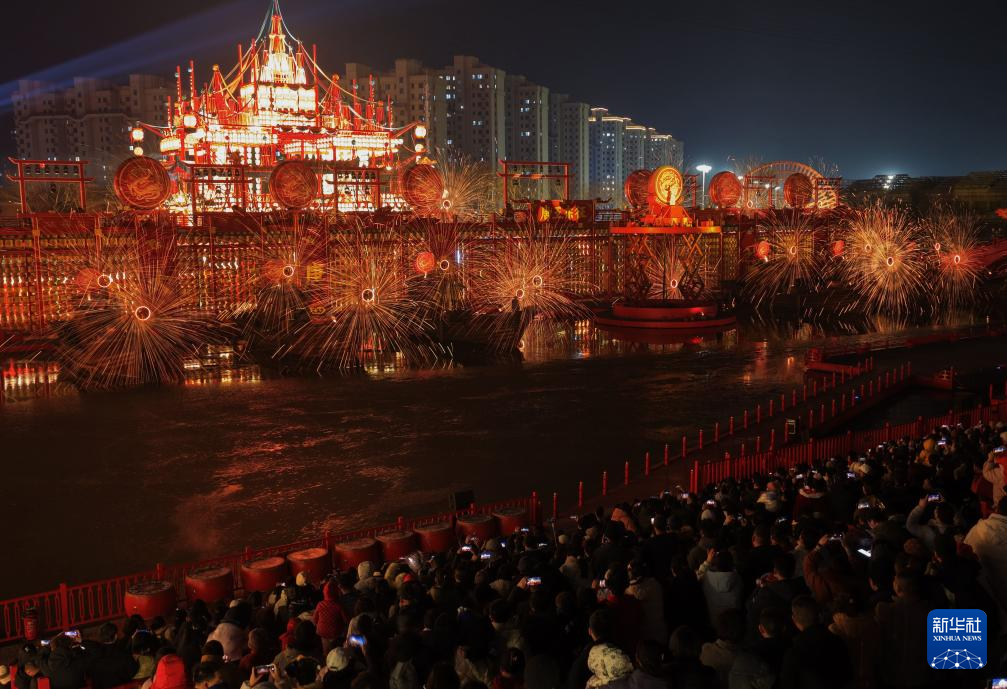春节期间,河北省唐山市丰南区河头老街灯火璀璨、火树银花,为游客呈现出一场流光溢彩的视觉盛宴。