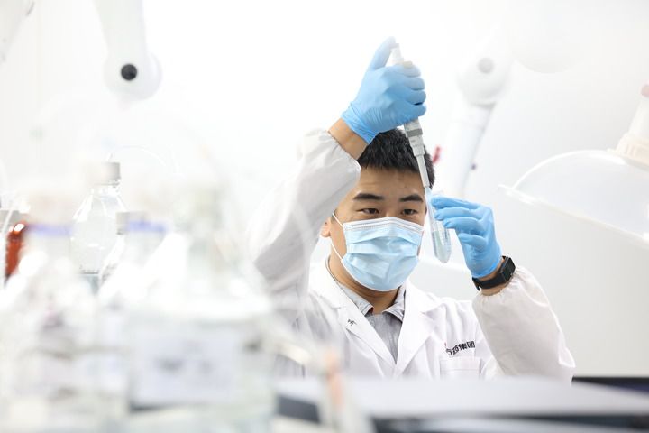 石药集团研发人员进行液相实验。(梁子栋 摄)