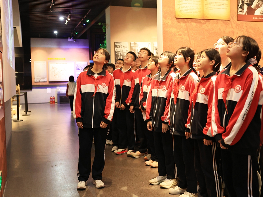 南宫市丰翼中学学生参观冀南革命斗争纪念馆。田优 摄
