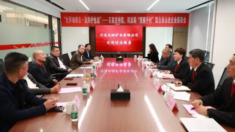 在普法座谈会上,石家庄中院法官围绕《中华人民共和国生态环境法典》对矿产资源开发利用的系统规定以及“绿色低碳发展”的专门规范,向企业进行了解读,同时围绕“合法开采、同步修复、后期植绿”等方面,与企业进行了深入交流。石家庄中院建议企业进一步严守矿区范围红线,落实“边开采、边修复”的法定义务,将生态环境法典要求内化为企业管理制度,打造真正意义上的绿色矿山、生态矿山。