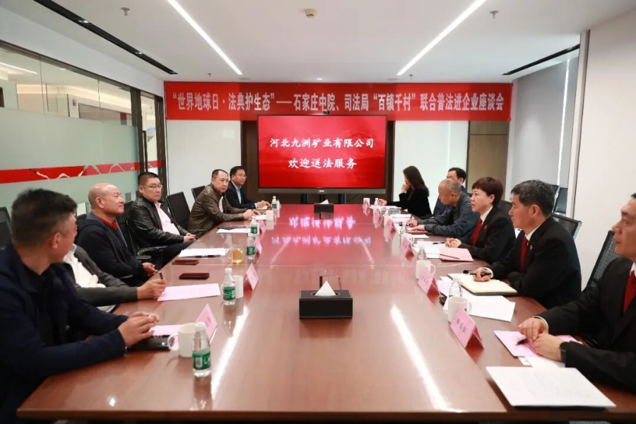 4月13日,在第57个世界地球日即将到来之际,河北省石家庄市中级人民法院党组成员、副院长张静带领中院法官,会同石家庄市司法局领导和相关工作人员,走进河北九洲矿业有限公司,联合开展“百镇千村”生态环境法典普法活动。此次活动以“世界地球日·法典护生态”为主题,通过面对面座谈交流和推送法律风险提示函,将法典精神与法治关怀送进企业、送进矿山。