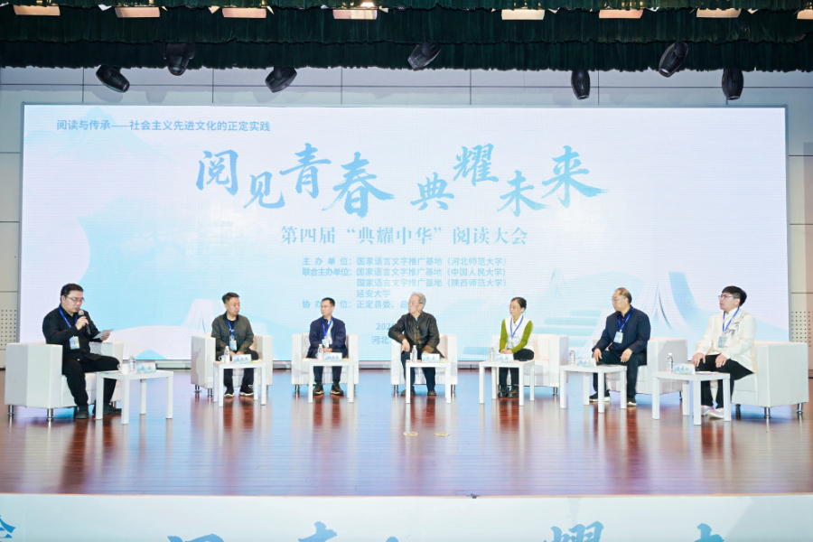 4月16日,第四届“典耀中华”阅读大会之“阅读与传承——社会主义先进文化的正定实践”主题对谈活动在河北正定中学举行。活动由国家语言文字推广基地(河北师范大学)主办,国家语言文字推广基地(中国人民大学)、国家语言文字推广基地(陕西师范大学)、延安大学联合主办,河北师范大学文学院提供学术支持。国内知名作家、学者代表及大中小学师生代表近500人参加了活动。