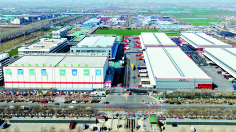 由石家庄企业润沃集团投建的河北润沃智慧物流(邢台)产业园内,运输车往来穿梭,智能设备高效运转,处处繁忙有序,生机勃发。